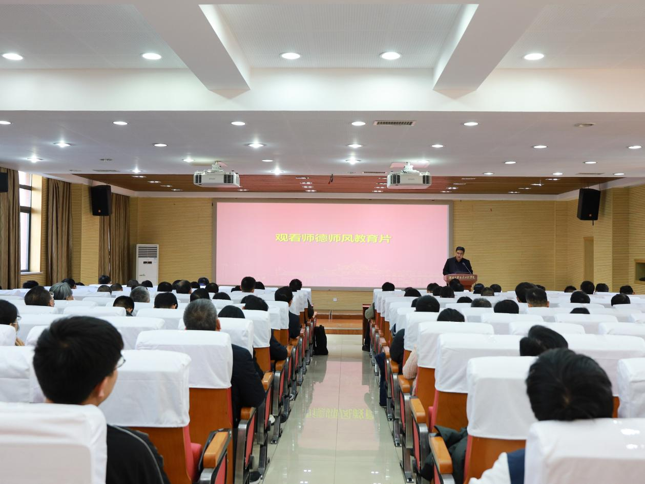 刘文结合师德失范典型案例,强调了新时代教师职业规范、划定基本底线和深化师德师风建设对于保障事业发展的重要意义,要求全体教职工要统一思想认识、涵养师德师风、践行教育使命,努力成为党和人民满意的“四有”好老师。与会人员集中观看了师德师风教育片。